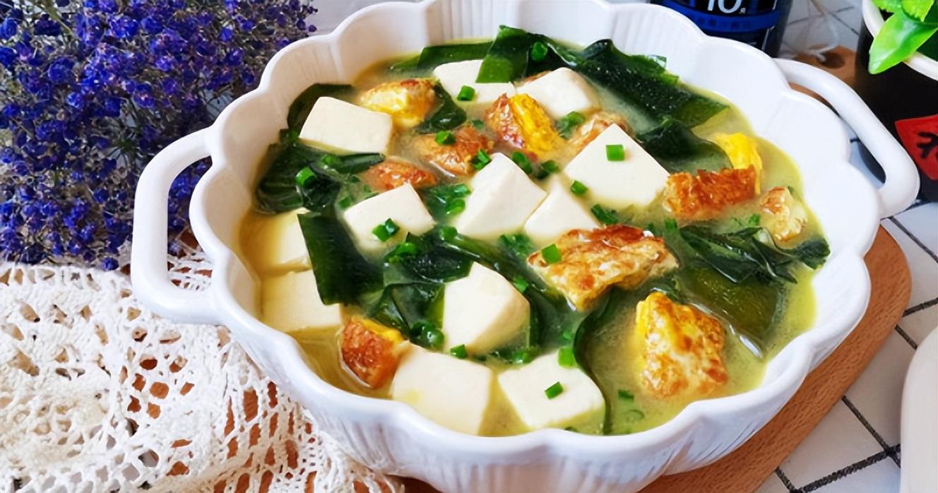3、炒好后加入適量的清水,倒入雞蛋塊和豆腐塊,開中小火煮10分鐘,出鍋前撒一點白鬍椒粉、一點食鹽和味精就可以出鍋了。