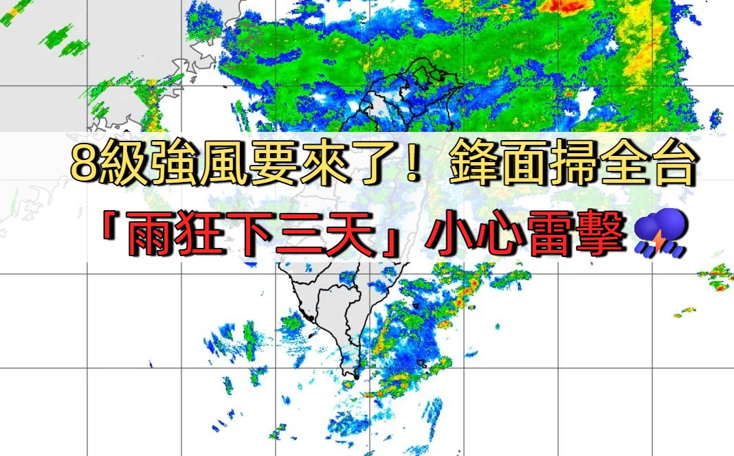 8級強風要來了!鋒面掃全台「雨狂下三天」專家示警:小心雷擊強陣風