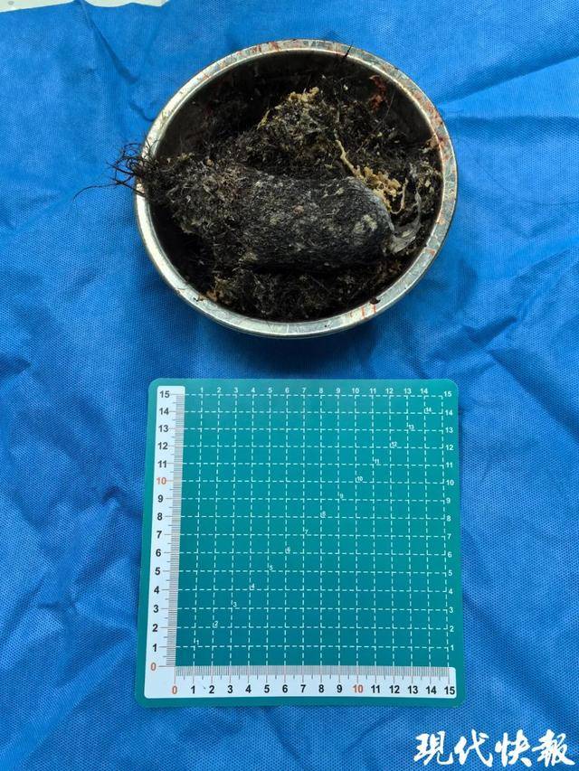 當醫生小心翼翼地打開孩子的胃壁時,在場的所有人都倒吸了一口氣...一個經年累月積聚的毛髮,形成的巨大髮團,這些在胃酸長期腐蝕下、變得堅硬如鋼絲球般的頭髮,正死死地嵌在胃壁上。由於頭髮纏繞交錯、牽拉困難,微創手術切口小,操作空間有限,專家團隊不得不像拆解一團亂麻,小心翼翼逐步分解髮團,整整2個小時的緊張操作,這巨大髮團才得以被完整取出。經過秤重,這個髮團足足有2公斤重。