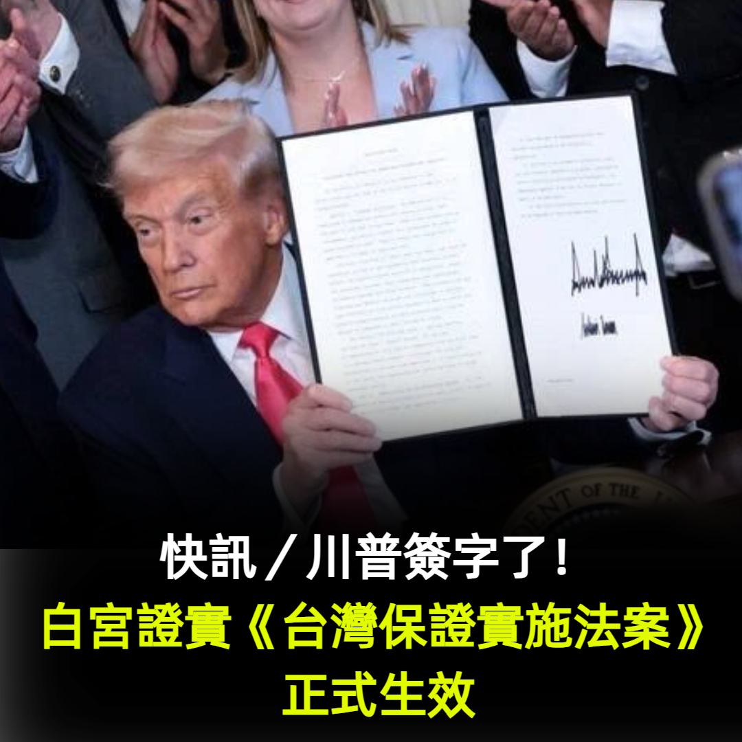 快訊/川普簽字!白宮證實:《台灣保證實施法案》正式生效